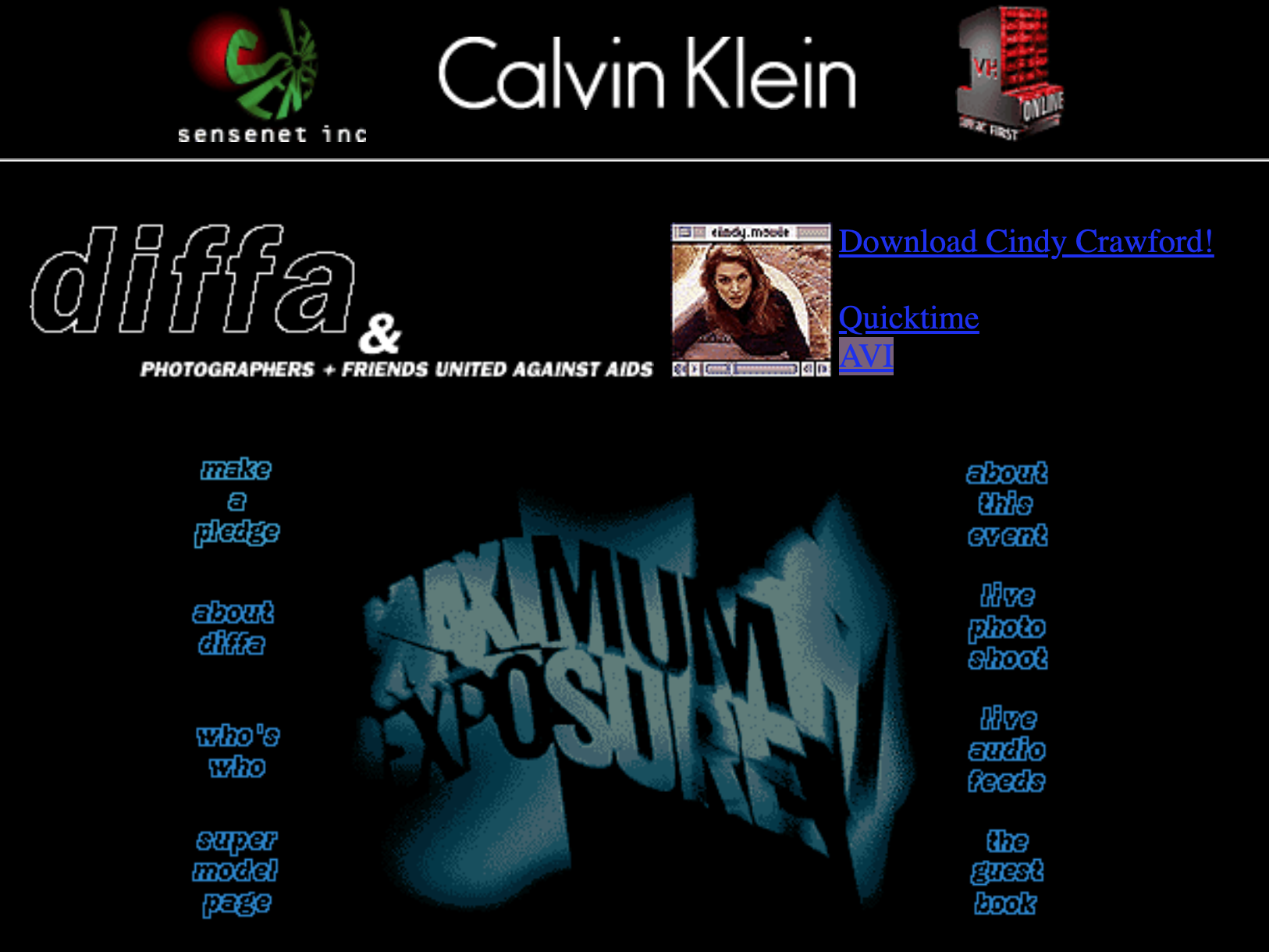 [early TECH] • Maximum Exposure/DIFFA • 1st online charity event 1996. Calvin Klein, VH1, Nynex.