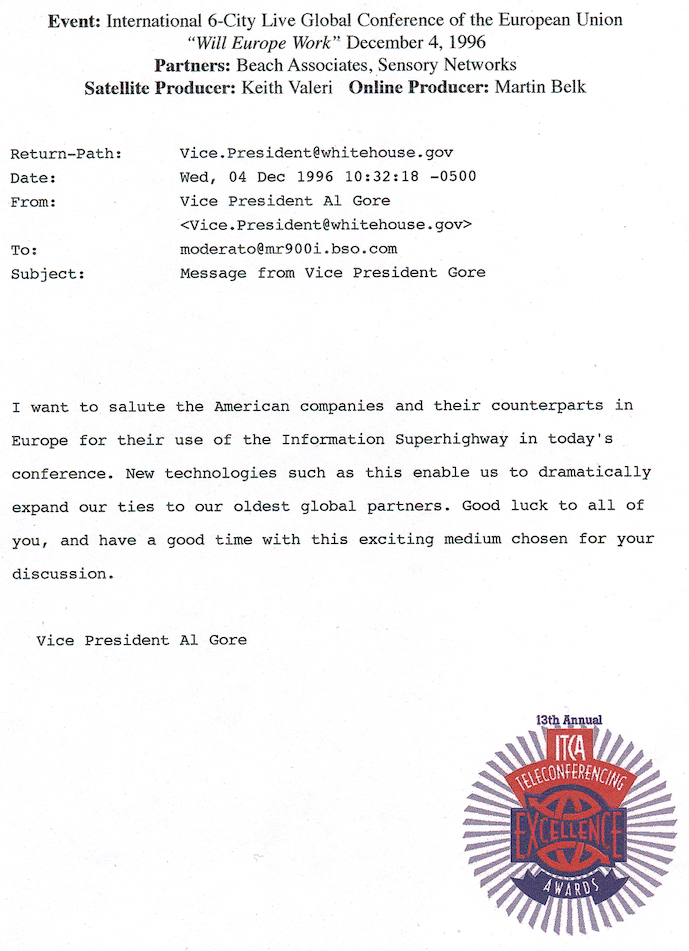 [early TECH] • Will Europe Work? Conference of the European Union webcast (ref: Vice President Gore; prod. by Martin Belk).