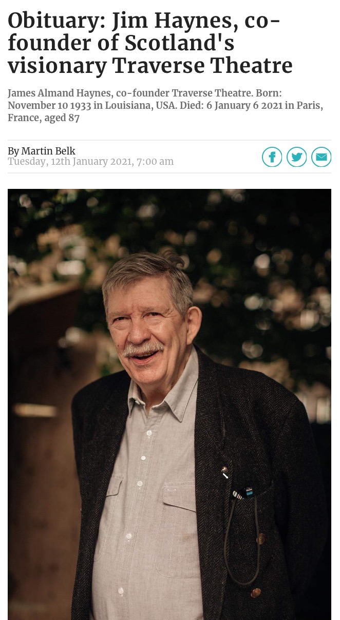 Jim Haynes 1933-2021 (official obit) The Scotsman